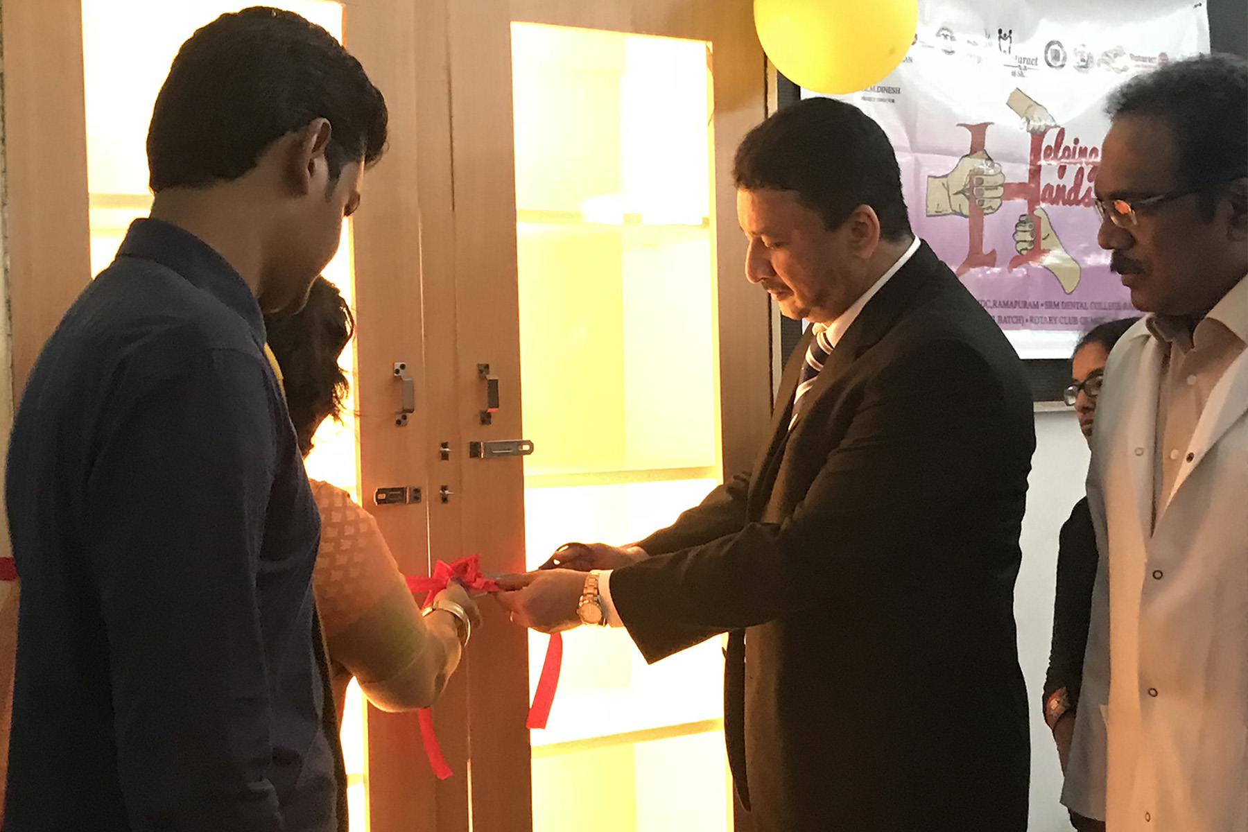 Dr. K.K. Raja, Head of the Department, Department of Oral and Maxillofacial Surgery, Dr. K. Ravi, Dean and Head of the Department, Department of Orthodontics and Orofacial Orthopedics, Dr. T.S. Sridhar, Director General, SRM Group of Institutions and the President of the Rotaract Club of SRM College, Ramapuram welcomed Dr. Balaji warmly upon arrival at the campus. Dr. Balaji cut a ribbon to mark the inauguration of the initiative aided by the President of the Rotaract Club. Santa Claus presented the first gift of the initiative to Dr. Balaji.