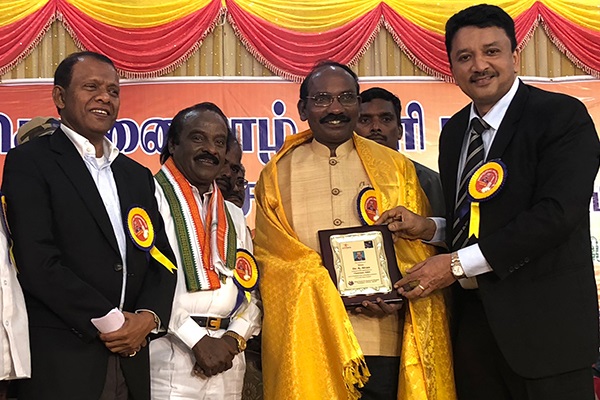 Dr. S.M. Balaji was invited to the felicitation function organized in honour of Dr. K. Sivan for his appointment as Chairman of the Indian Space Research Organization (ISRO). Dr. S.M Balaji met with Dr. Sivan at the function and presented him with a memento to mark the occasion. Also present at the function were Dr. Arumugam Murukiah, member, Harvard University Tamil Chair Committee, Visiting Professor, Center for Robotics and Neural Systems, Plymouth University and Mr. H. Vasanthakumar, MLA.